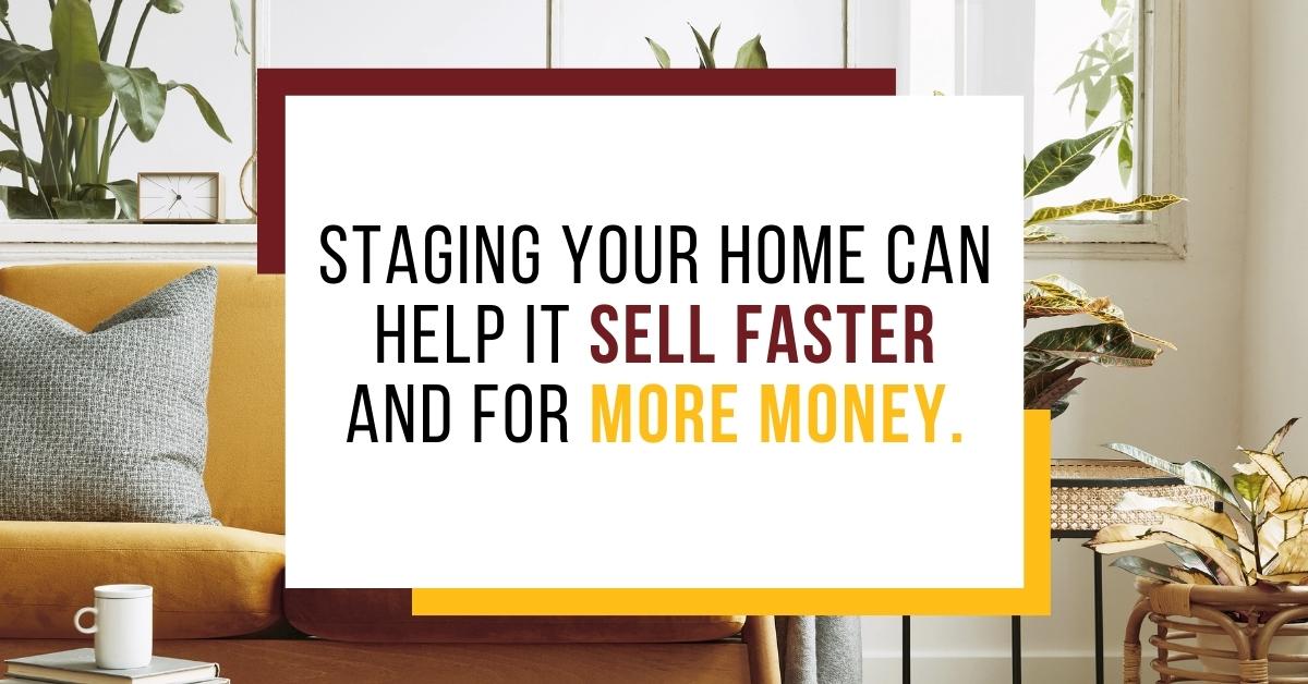 The process of making your home look its best and appeal to potential buyers is called staging, and it can be a game changer. According to the International Association of Home Staging Professionals, an average priced staged home sells 5 to 11 times faster than its unstaged counterpart. Even better, the majority of staged homes sell for 4% to 20% over list price!5